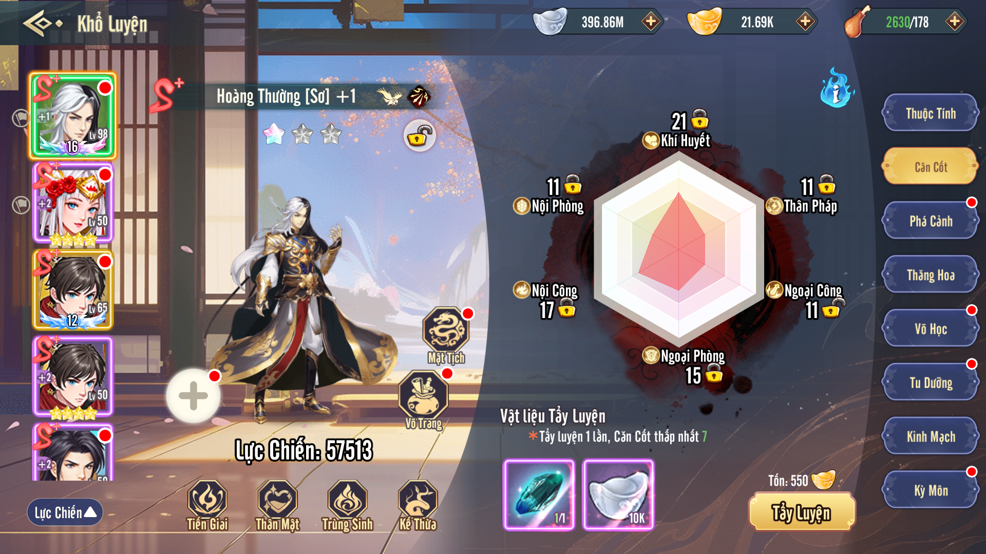 Trong quá trình tẩy luyện điểm Căn Cốt, Đại Hiệp có thể khóa các chỉ số theo ý thích để tránh việc tẩy luyện nhầm.