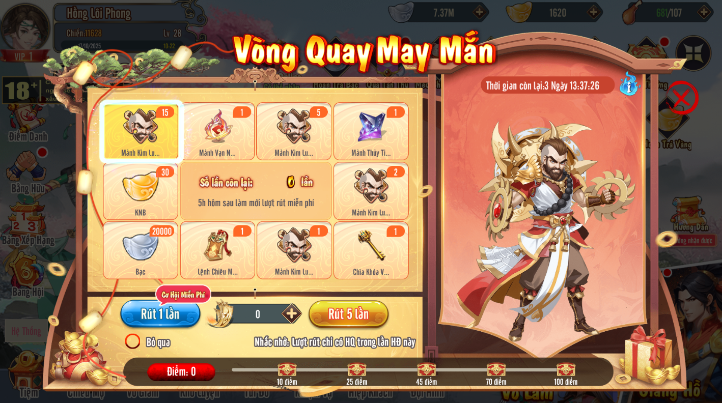 Tại đây, khi các Đại Hiệp tham gia quay Vòng Quay May Mắn đạt đủ số điểm thì có thể nhận quà.