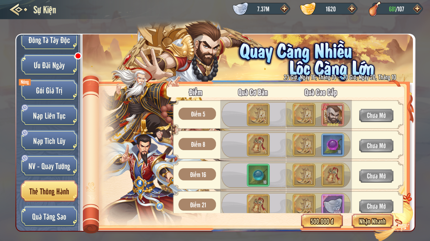 - Quà Cơ Bản: Có thể nhận miễn phí khi đạt mốc.